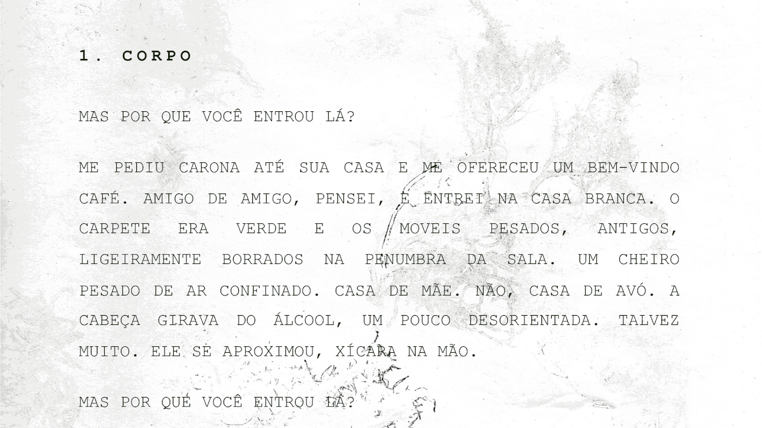 Durante aquele ano, coletei, além de imagens, musgos. Cuidei deles. Observei, a cada visita à casa branca, o escuro brotar do peito úmido, o musgo a me subir pela garganta, o corpo tornar-se relevo. O musgo e seu cheiro úmido são reminiscências do carpete embolorado onde fiquei imobilizada no horror daquela noite distante.